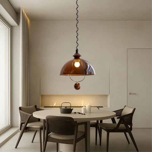 Viresta Scandinavian Pendant Lamp in Wood and Tinted Glass