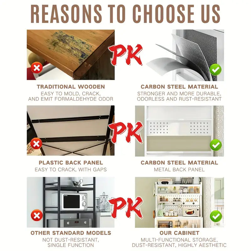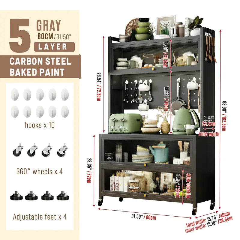 Tired of a cluttered kitchen? Reclaim your space and redefine organization with this beautifully designed 65" tall 5-Tier Kitchen Rack — your new all-in-one solution for storage, display, and style.
