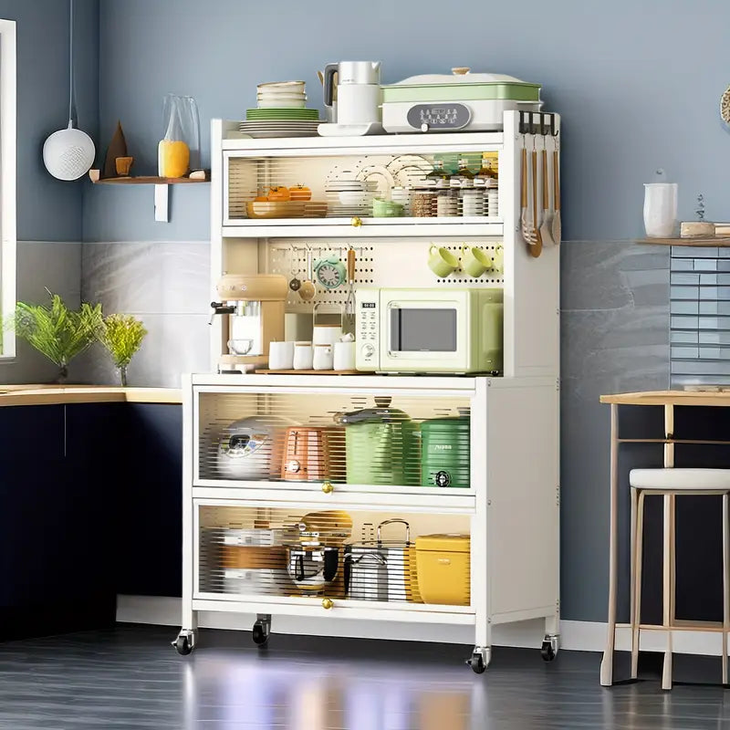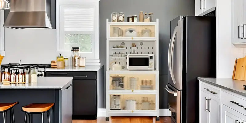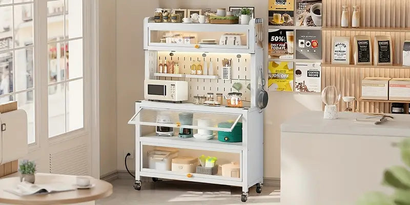 The modern, neutral design complements any kitchen, dining area, or living space. Great for apartments, condos, or homes needing smart storage solutions.
