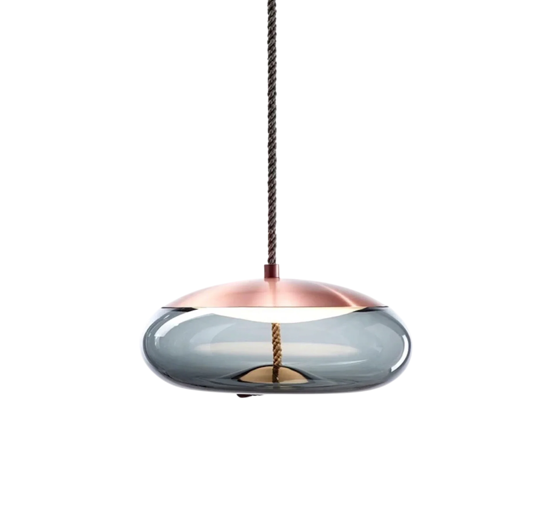 This rose gold pendant lamp with a rope accent combines luxury with a rustic touch. The warm rose gold finish creates a modern, elegant look, while the rope detail adds a natural, handcrafted feel. Perfect for above a dining table, in a bohemian interior, or as a stylish focal point in a minimalist space.