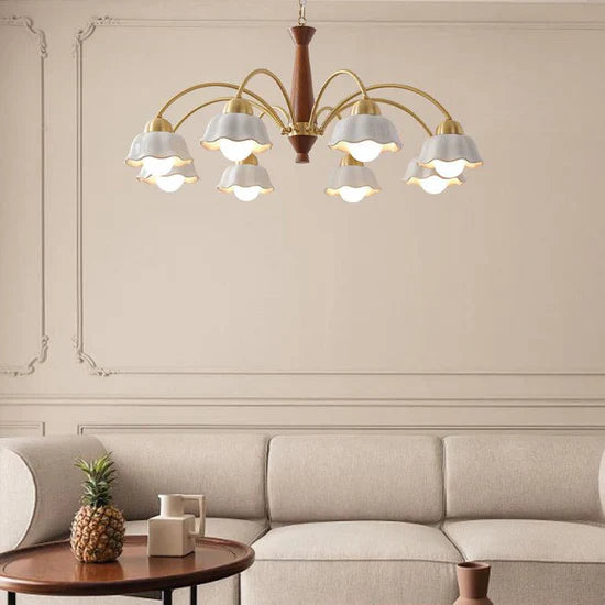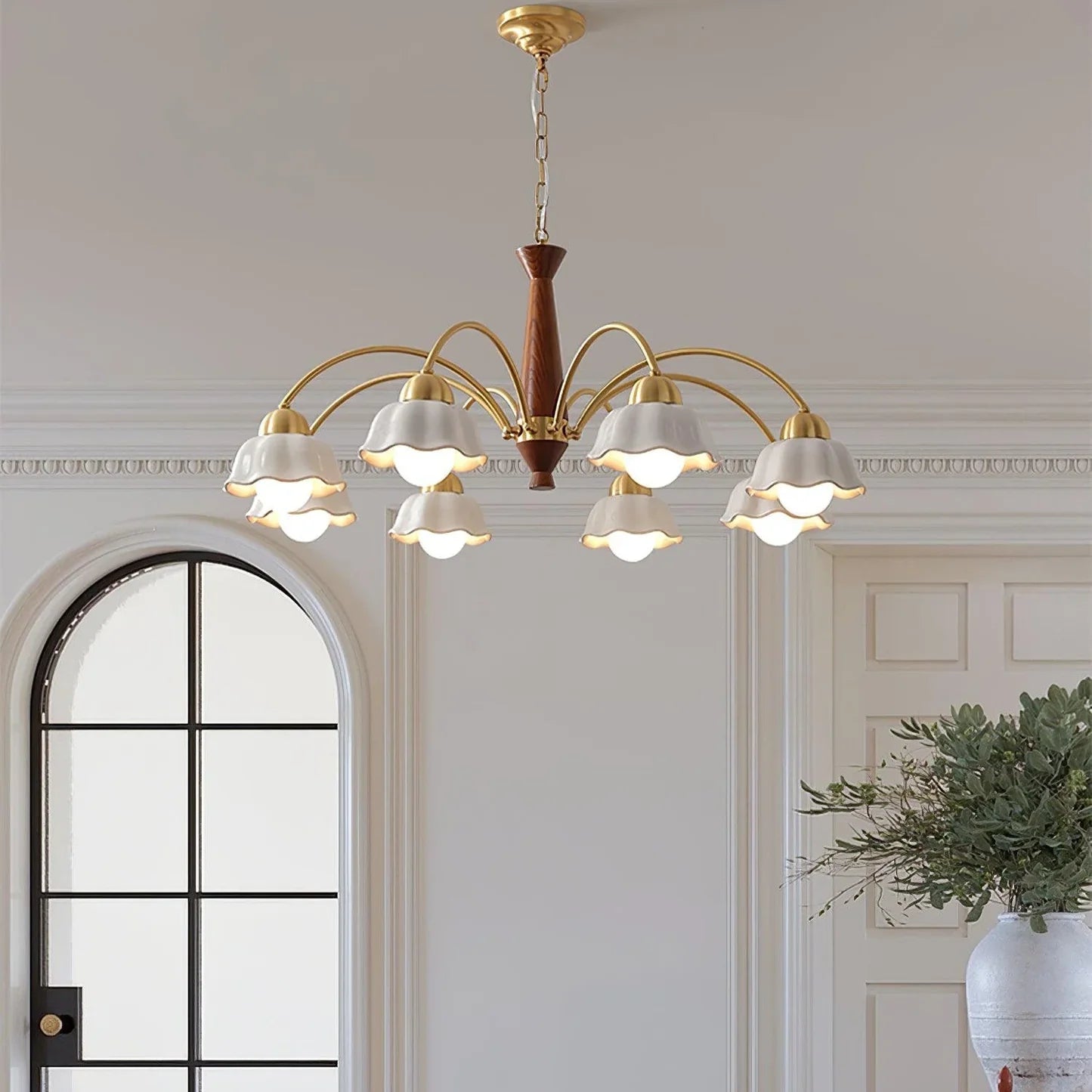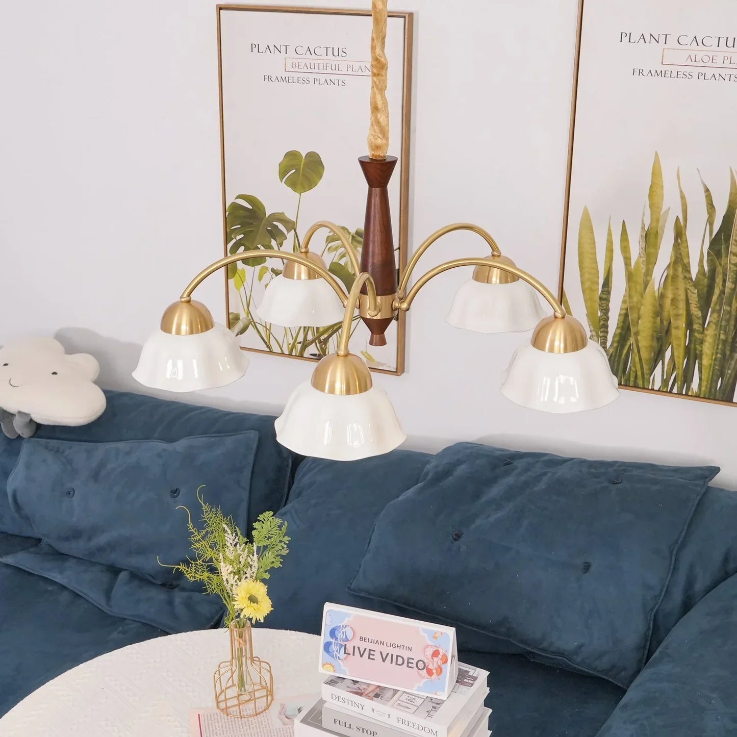 The Noctia chandelier combines the best of mid-century design with high-quality materials like ceramic and copper . Its unique silhouette and warm finish create a luxurious, retro look. Perfect above the dining table, in the living room, or as a focal point in a spacious hallway. This lamp not only offers stylish lighting but also adds character to any modern or vintage interior.