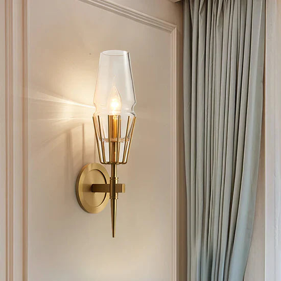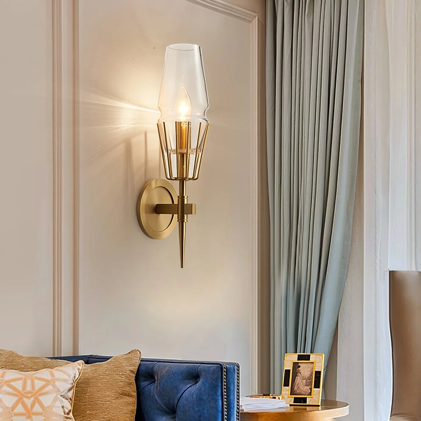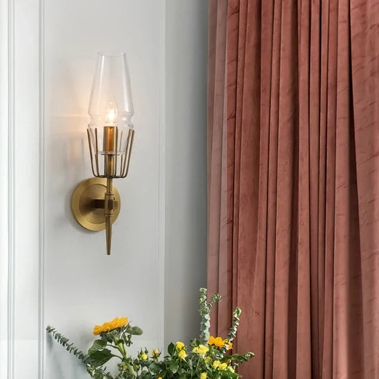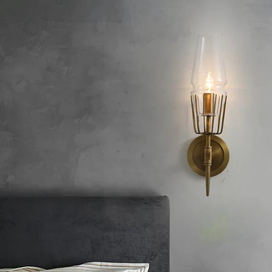 Orelia Vintage LED Wall Lamp in Castle Style of Copper and Glass