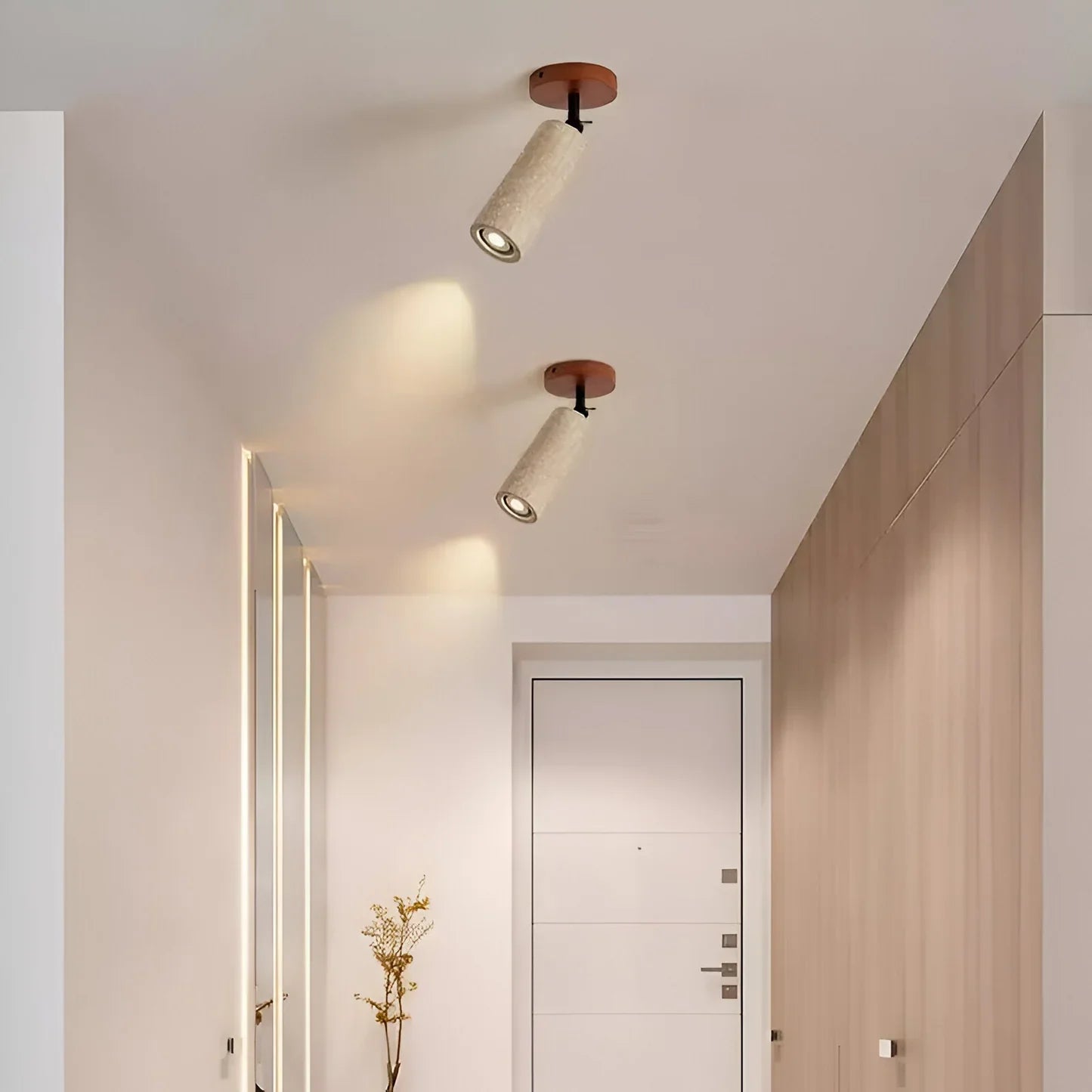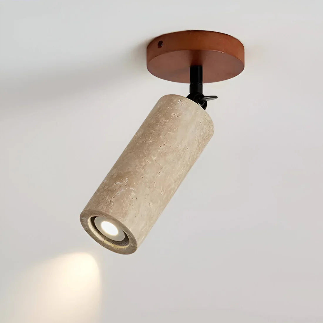 This adjustable travertine and wood lamp combines Scandinavian simplicity and natural charm in a versatile design. Thanks to its 2-in-1 function, it's suitable for both wall and ceiling mounting , ideal for those seeking flexibility in compact or minimalist spaces. The combination of warm travertine and solid wood exudes tranquility, while the integrated LED lighting provides a soft, functional glow.