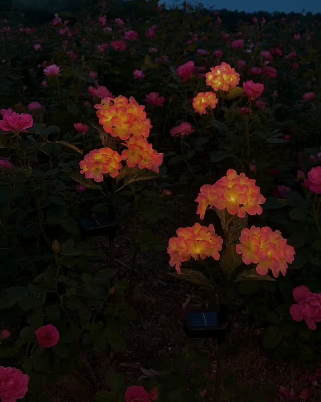 The Fairy Hydrangea Lights are powered by an inbuilt solar panel designed for easy use, giving it a neat and tidy appearance! This decor doesn't need batteries or cable wires to function.
