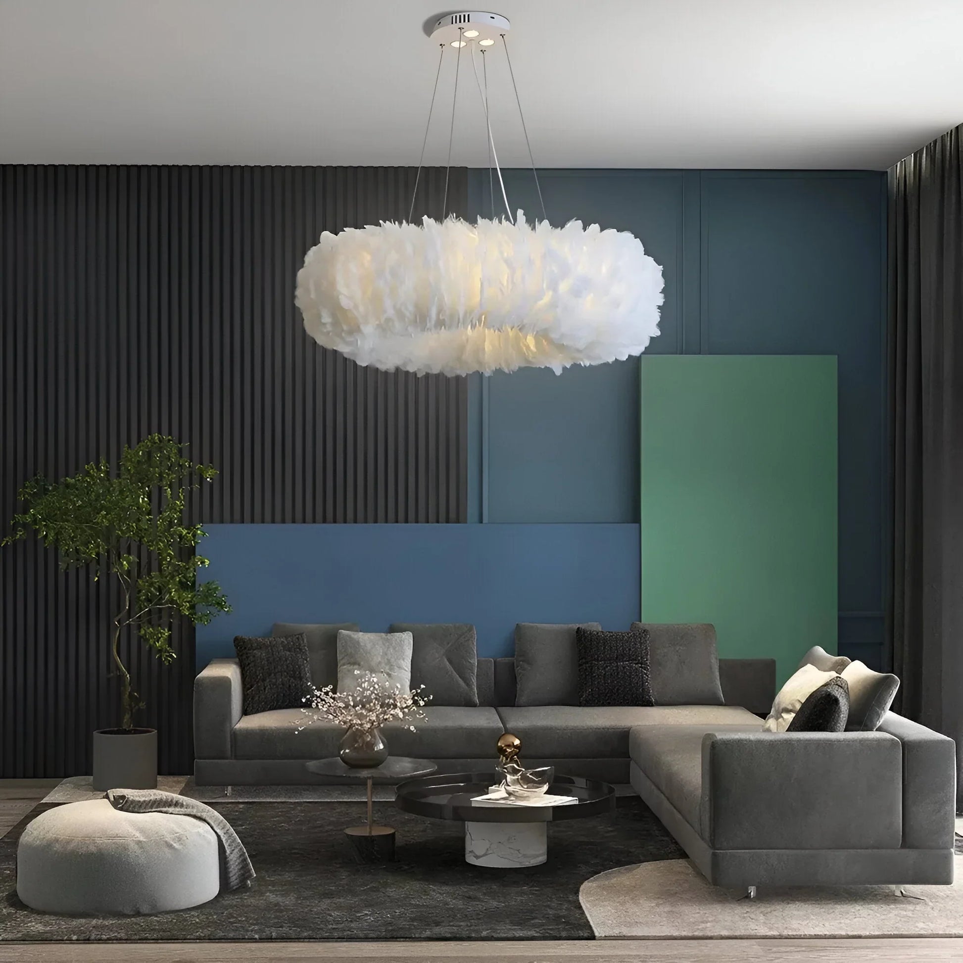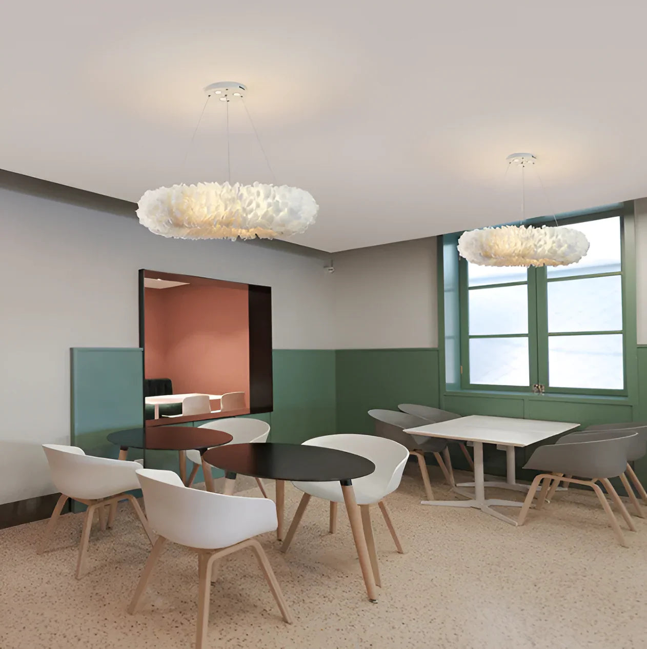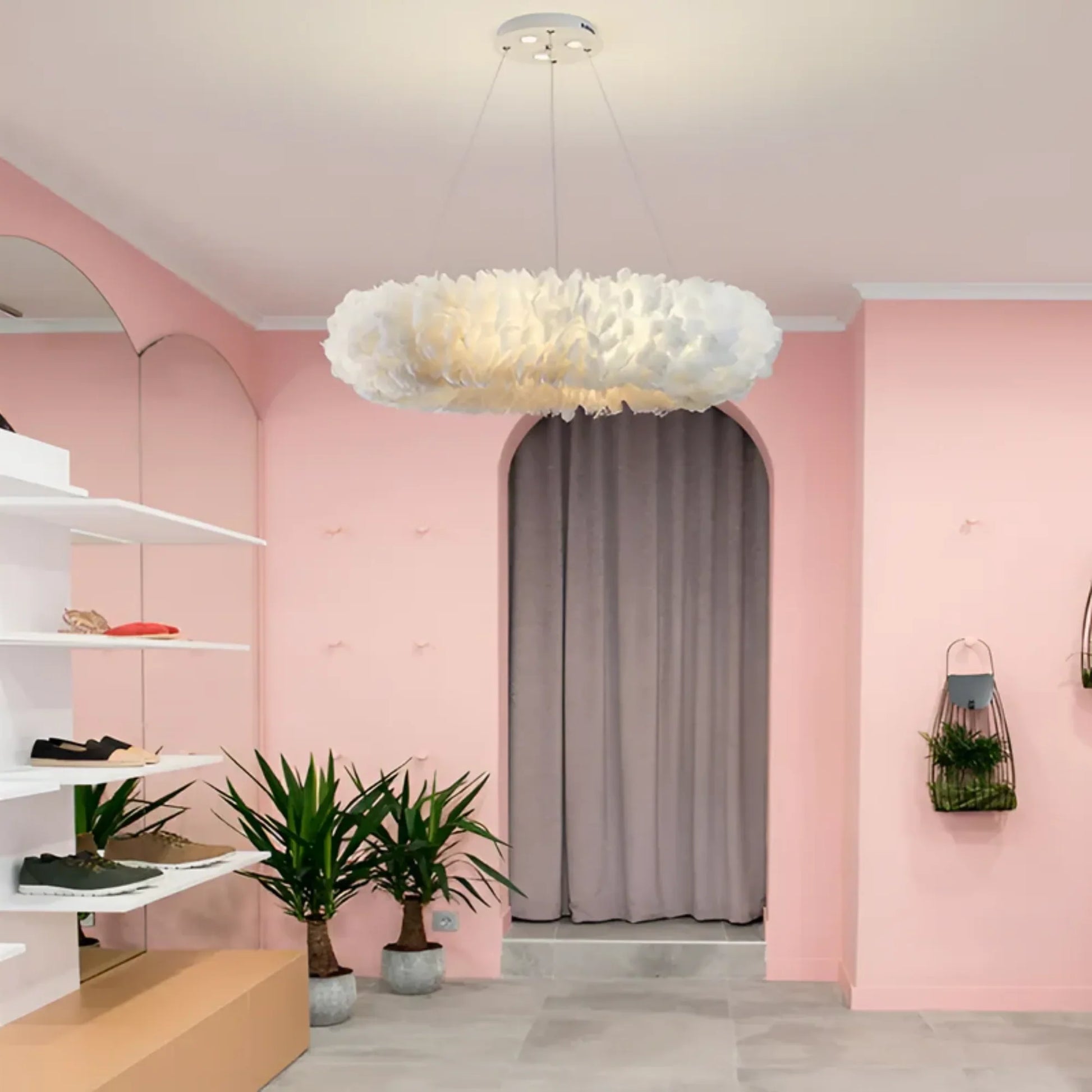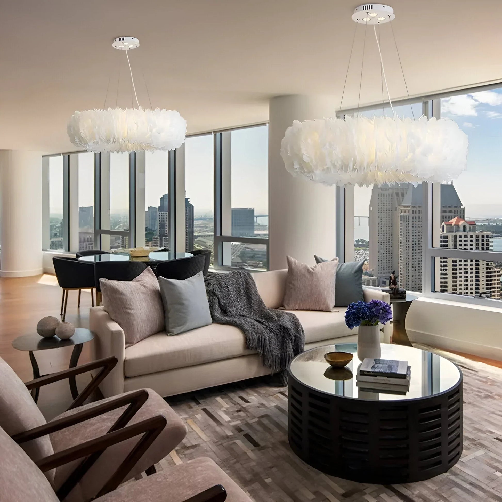 Velastrae Luxury White Hanging Lamp in Circle Shape with Feathers