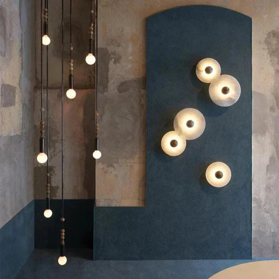 The Vivia round LED wall lamp combines natural elegance with a sleek Scandinavian design. Made of genuine alabaster , this lamp casts a warm, diffused glow that creates a soothing ambiance in any room. Perfect as mood lighting in the hallway, bedroom, or living room. Thanks to its compact size and timeless design, this wall lamp is ideal for both modern and classic interiors. Easily add style and character to your walls.